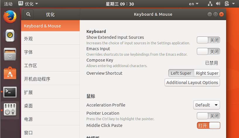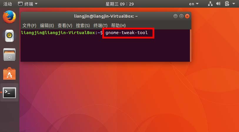 4、安裝后在終端直接“gnome-tweak-tool”打開這個優化工具。