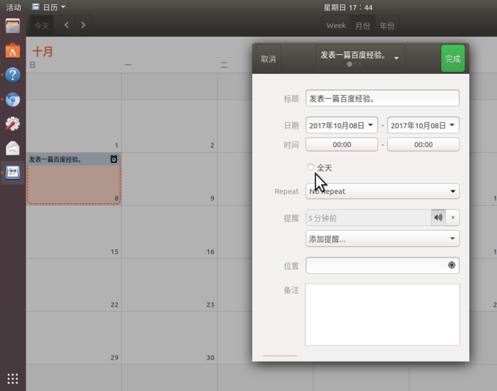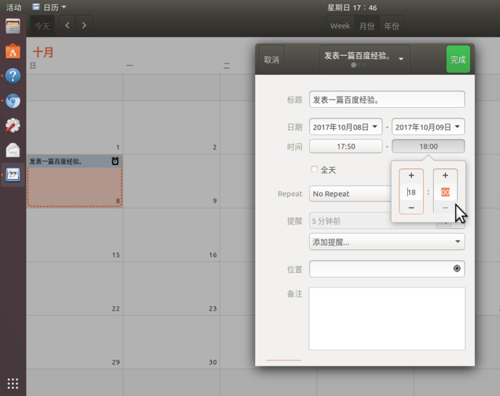 Ubuntu 17.10中默認使用 Gnome 作為桌面環境,該環境提供了較為方便直觀的日程管理功能。希望大家喜歡,請繼續關注武林網。