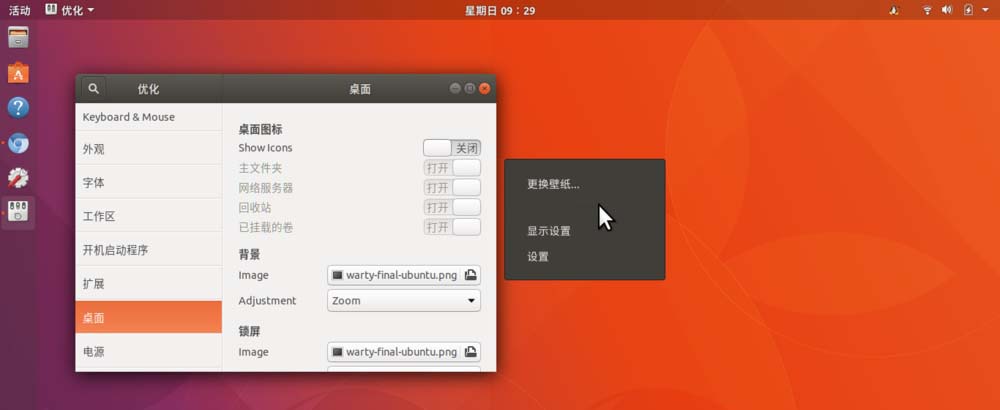 二、使用“Gnome 優(yōu)化”來設(shè)置是否顯示桌面圖標(biāo)