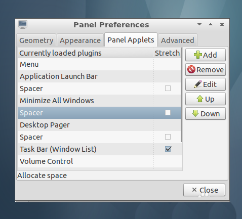 11、右鍵單擊LXDE面板,然后選擇“ 面板設置 ”進行自定義。從“面板首選項”窗口中,您可以根據掃描,大小和外觀更改其位置。您還可以切換面板小程序,并根據您的喜好重新排序。