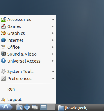 7、在左下角,您可以找到典型的菜單按鈕,啟動器區域和工作區切換器。在右側,您可以找到典型的通知區域,時鐘和注銷按鈕。