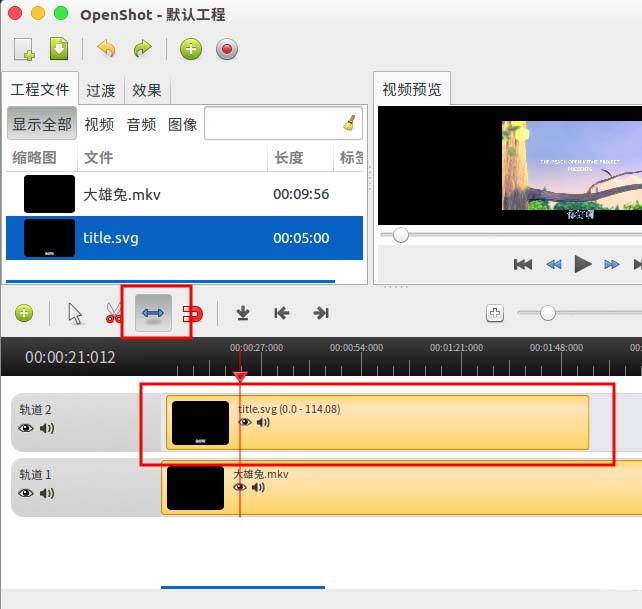 10、我們直接把title.svg拖動到“軌道2”上面。