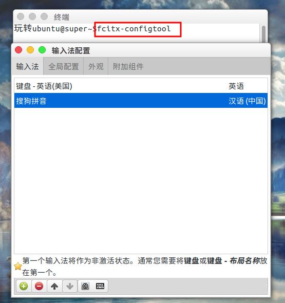 7、或者我們也在終端窗口使用以下的命令打開fcitx輸入法配置。