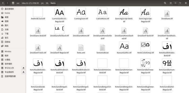 現在就好辦了,直接把舊的fonts文件全都copy過去新的fonts文件那里,重啟idea,這時候久違的ubuntu字體就回來啦!