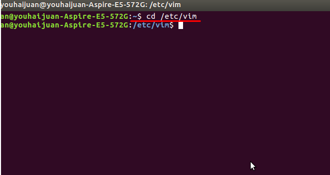 1、打開終端 輸入cd /etc/vim 回車