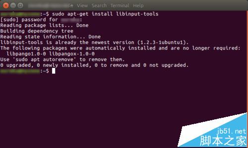 2、ctrl + Alt +T打開(kāi)終端,輸入sudo apt-get install libinput-tools,我已經(jīng)安裝過(guò)了,所以你們的結(jié)果可能和我的不一樣,如果出現(xiàn)了error,嘗試sudo apt update,之后重新輸入運(yùn)行