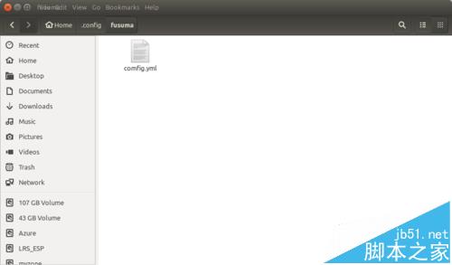 3、在.config下面新建一個(gè)fusuma目錄,打開(kāi)它。新建一個(gè)文件,名字是config.yml(抱歉圖中我打錯(cuò)了)