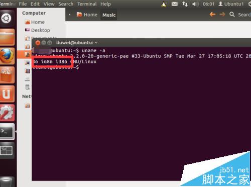 3、我們在里面輸入uname -a,可以看到我們的系統時32位的。因為沒有出現64的信息