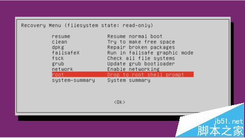 5、在這里我們選擇root菜單項,如下圖所示,選擇后回車即可。