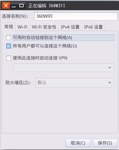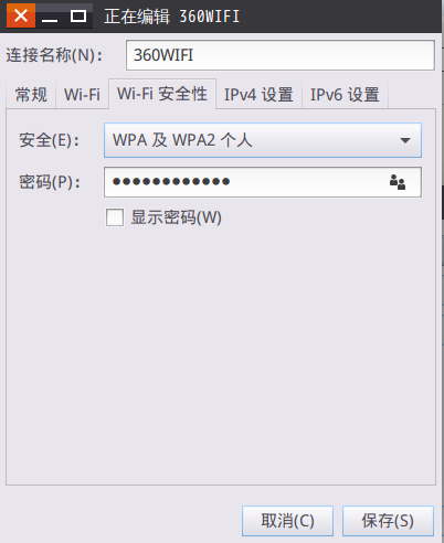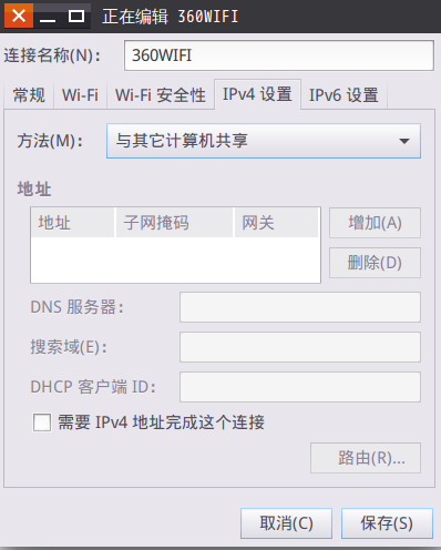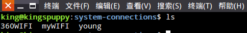 設置完成之后點擊右下角保存。至此一個wifi熱點創建完成,但是這樣設置出來的wifi手機是搜不到的惡,我們來修改一下剛剛創建的wifi的配置文件,文件在路徑/etc/NetworkManager/system-connections/下,文件名為剛剛設置時第一行寫的名字。