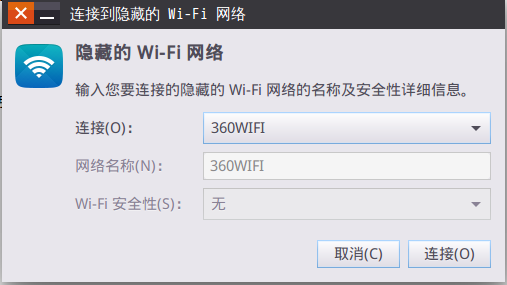 首先,點擊右上角網絡,在下拉菜單選擇“連接到隱藏的Wi-Fi網絡”,在彈出的框里選擇剛剛創建的wifi,點擊連接,就能使用wifi上網了!