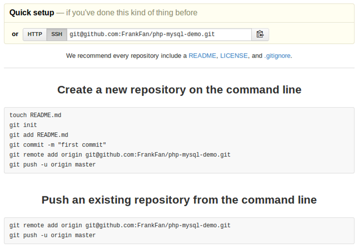 首先,在github.com上創(chuàng)建一個新的repo,根據(jù)情況加上適當(dāng)?shù)?gitignore,LICENSE等,然后提交本地代碼至github