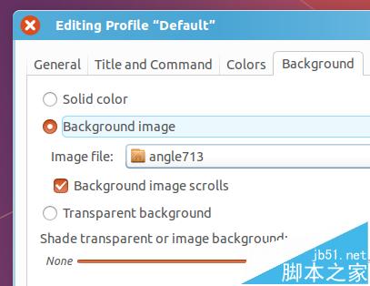 7、如果想要透明的,也可以,在點擊color的那排菜單欄點擊background,取消solid color(純顏色),選擇background image(透明背景)。