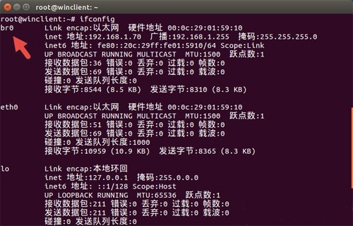 配置完成后需要重啟一下,再使用如下命令驗證網(wǎng)絡(luò)橋接是否配置成功:ifconfig