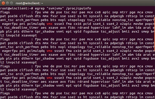 要跑KVM 必需要確保你 Linux 系統(tǒng)所在的 CPU 是支持硬件虛擬化的,不然將無法正常使用。我們可以在終端中執(zhí)行如下命令進行驗證: