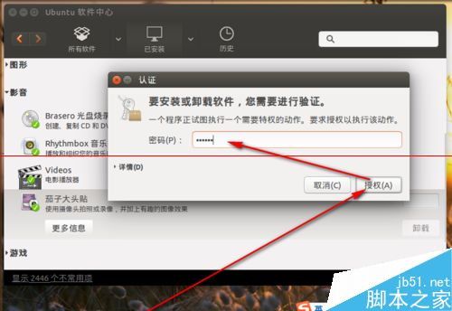 4、在驗(yàn)證窗口中輸入你計(jì)算機(jī)的管理密碼,然后點(diǎn)擊“授權(quán)”按鈕。