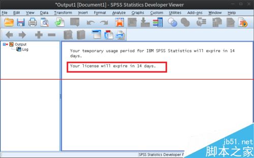 7、在終端中運行 cd /opt/IBM/SPSS/Statistics/22/bin進入程序所在目錄,然后運行 ./spssclient打開軟件,這時已經可以運行SPSS了,不過在彈出的窗口中可以看到使用期只有14天,而且輸入中文的話仍然是亂碼,下一步需要激活它然后解決中文亂碼的問題。