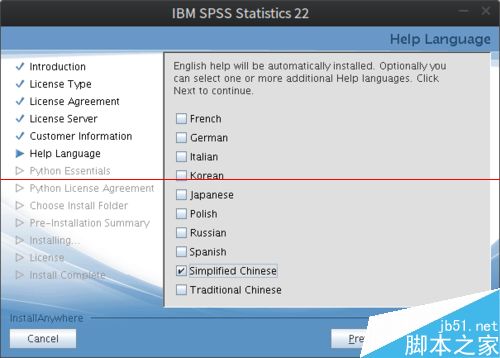 3、用戶名可以隨意填寫。默認安裝的幫助文檔是洋文的,需要什么語言的需要自已勾選。