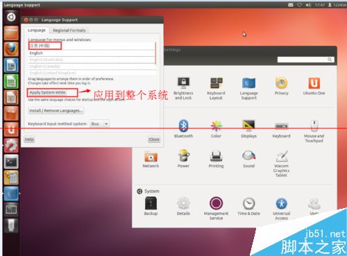 5、將漢語(中國)拉到頂部后,我們點(diǎn)擊“Apply System-Wide”,將漢語(中國)應(yīng)用到整個(gè)系統(tǒng)。