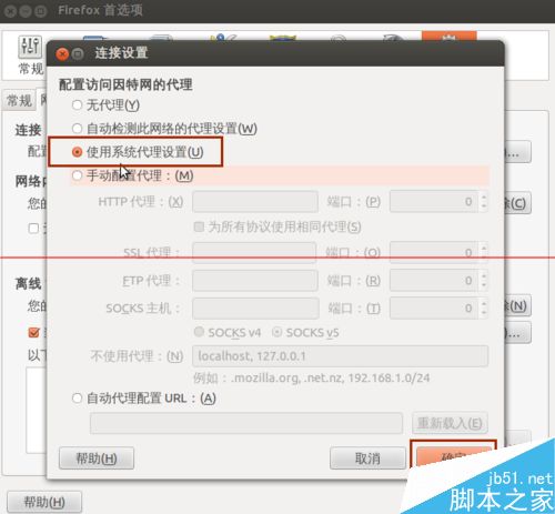 8、在【連接設置】對話框中,選擇【使用系統代理設置】,然后確定即可上網了。