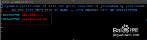 5、再該文件下添加:nameserver 192.168.1.1,nameserver 220.170.64.68,如圖: