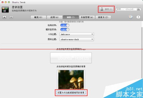 7、解鎖后 點擊 下面的 "設(shè)置為與當(dāng)前桌面相同的背景"