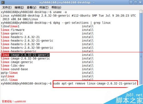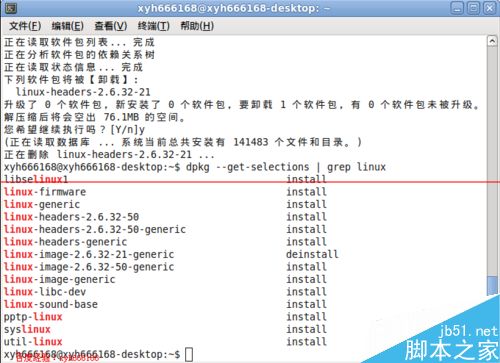 在 linux-image-2.6.32.21-generic 后面顯示deinstall,表示已經(jīng)卸載了