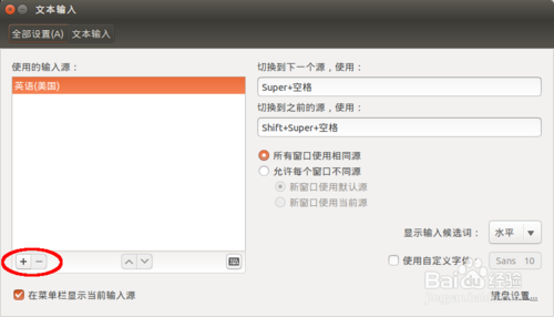 黃圈里是調用的快捷鍵,默認是 Super (也就是鍵盤上的 windows 徽標鍵)+空格,如果想改的話,可以點擊,然后按下自己想要的組合鍵(比如 Ctrl + 空格),即刻生效。