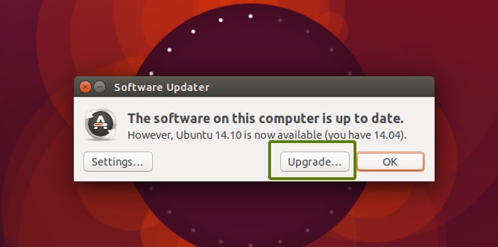要從Ubuntu 14.04 升級到 Ubuntu 14.10,遵循下面的步驟: