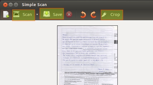 現在我們可以打開"Simple Scan"(或者其它掃描工具)并開始掃描文件。我們可以旋轉,修剪,和保存生成的圖片: