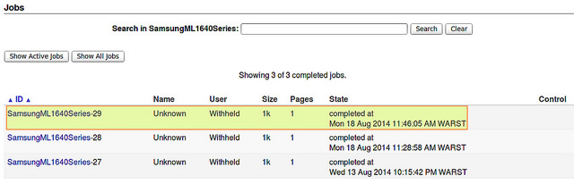 SamsungML1640Series root 27 [13/Aug/2014:22:15:34 -0300] 1 1 - localhost Test Page - -SamsungML1640Series gacanepa 28 [18/Aug/2014:11:28:50 -0300] 1 1 - 192.168.0.105 Test Page - -SamsungML1640Series gacanepa 29 [18/Aug/2014:11:45:57 -0300] 1 1 - 192.168.0.105 Test Page - -
