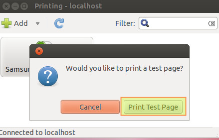 4) 我們接下來將被詢問是否打印一張測試頁。讓我們點擊"Print test page"吧: