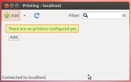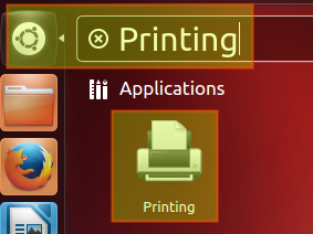 在我們的Ubuntu 12.04的客戶端,我們將打開"Printing"菜單(Dash -> Printing).你會注意到在其它發行版中,這個名字也許會有一點差別(例如會叫做"Printers" 或者 "Print & Fax"):