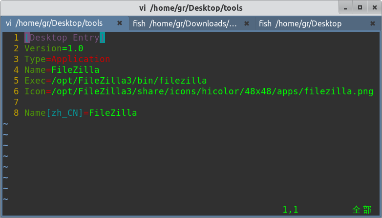 1. 首先建立一個filezilla.desktop文件,內容如下圖: