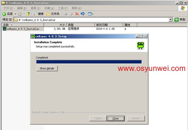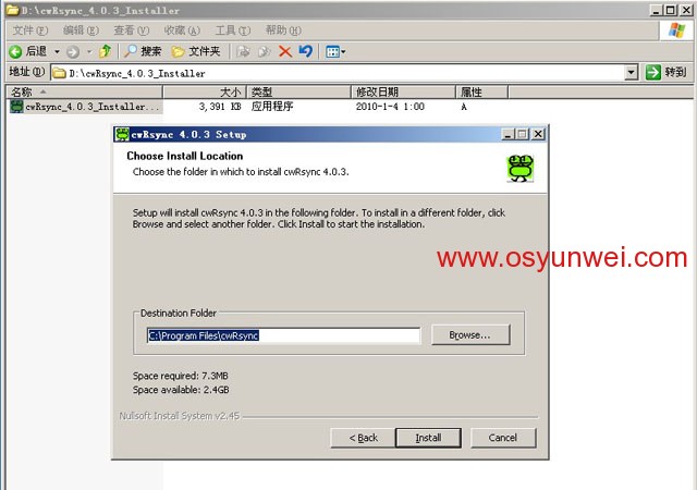 解壓cwRsync_4.0.3_Installer.zip 雙擊打開cwRsync_4.0.3_Installer.exe