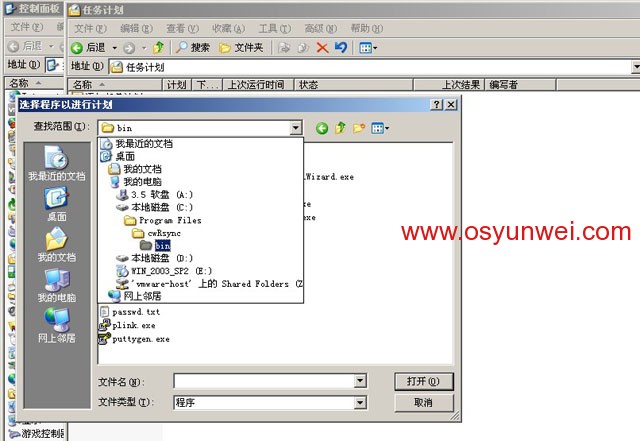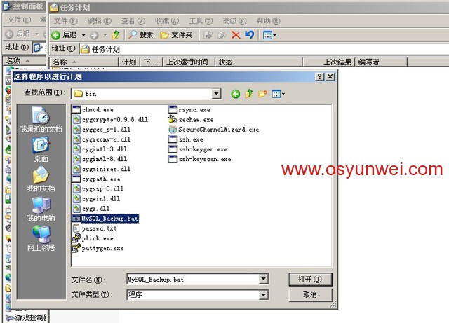 瀏覽,選擇打開C:/Program Files/cwRsync/bin目錄里面的MySQL_Backup.bat