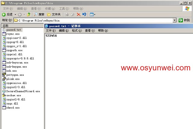 1、打開C:/Program Files/cwRsync/bin目錄,新建passwd.txt
