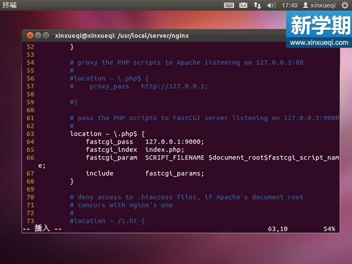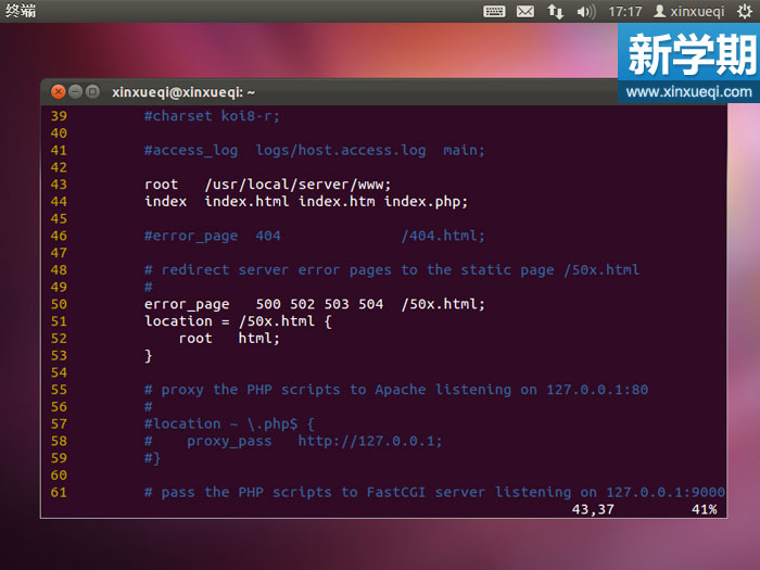 修改nginx.conf,終端中鍵入“vi /usr/local/server/nginx/conf/nginx.conf”回車。