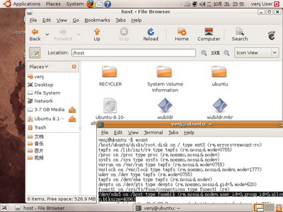 關于Wubi出來的Ubuntu系統,有一個問題似乎一直困擾著很多新手。那就是怎么在Ubuntu中訪問安裝有Ubuntu的那個磁盤呀!【這個 問題有點像蛋生雞雞生蛋的問題一樣詭異。】我已經在m個地方看到n個人對這個問題表示困惑了。其實Ubuntu已經為我們掛載好這個分區。只是你看不到磁 盤圖標罷了。這個分區實際上被掛載到了/host下。趕快去看看吧,文件是不是都好好的躺在那里呢。