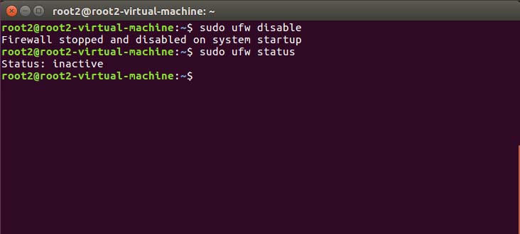在Ubuntu中 我們使用sudo ufw disable命令來關閉防火墻。執行該命令之后 我們使用sudo ufw status命令來查看當前防火墻的狀態 如果是inactive 說明我們的防火墻已經關閉掉了。