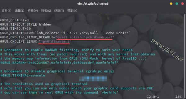 2.修改 GRUB_CMDLINE_LINUX_DEFAULT 和 GRUB_CMDLINE_LINUX 以在啟動時禁用 IPv6:
