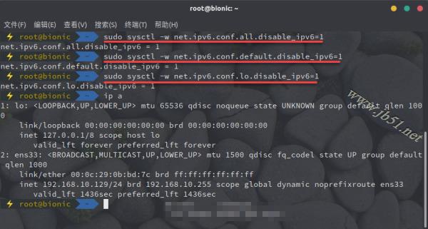 注意:上述方法只是在 Ubuntu 系統中臨時禁用了 IPv6 協議,重啟后系統會自動再次啟用 IPv6。