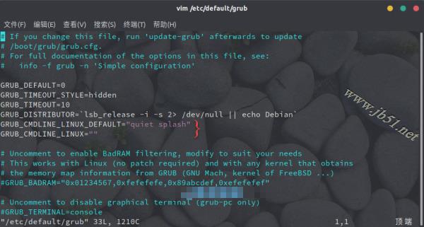 1.使用 VIM 或 Nano 等文件編輯器編輯 /etc/default/grub 配置文件