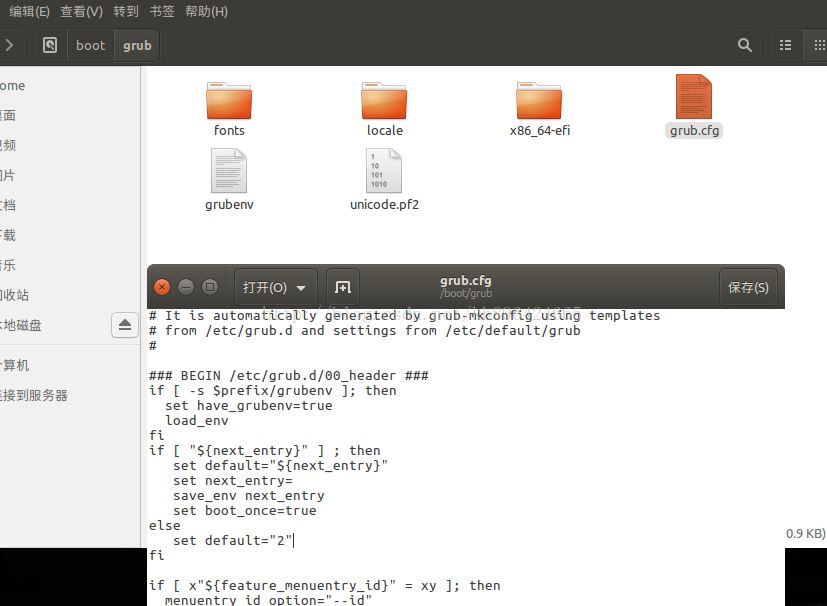 一、桌面右鍵打開終端輸入:sudo nautilus 獲取root權限,這時會跳出一個文件,依次進入計算機/boot/grub/grub.cfg雙擊打開,修改 set default="2"如下圖。我這里是2因為在啟動界面我的window選項是第三個,和c語言中的數組下標差不多。如果你是第四個位置就修改為3,依次類推。