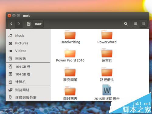 3、打開文件管理器,在左側導航欄中導航到“計算機”,然后在右側窗口中導航到 /mnt 文件夾。這時,就會看到刻錄到光盤上的文件了。