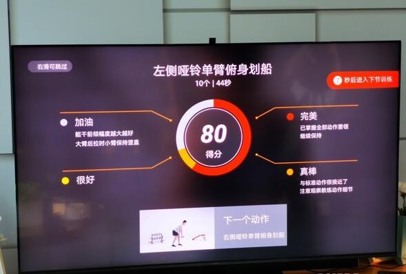 除了通話和拍照,華為對這顆攝像頭進行了深度開發。華為智慧屏通過這顆攝像頭還支持AI健身和AI Kids,其中AI健身只需要通過語音說“我要健身”或者在首頁打開即可使用。AI健身功能是華為與北京體育大學合作,通過開發數十種健身視頻,來為用戶提供專業的健身課程。該功能對于想健身但又沒時間健身的白領一族而言,非常實用,在家就能享受到最專業的健身指導。