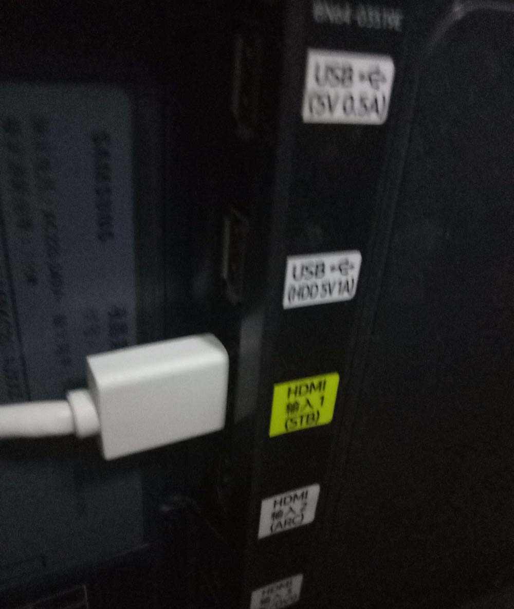 4、如果家里的電視機是傳統電視機,需要使用到AV線,盒子左邊第一個孔就是插AV線的地方,