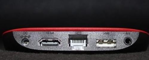 H7芒果嗨Q電視盒子接口全部是設計在機身背后,有AV三色接口,可以連接老式電視機,HDMI高清接口連接液晶電視,還有網線接口可以插網線。