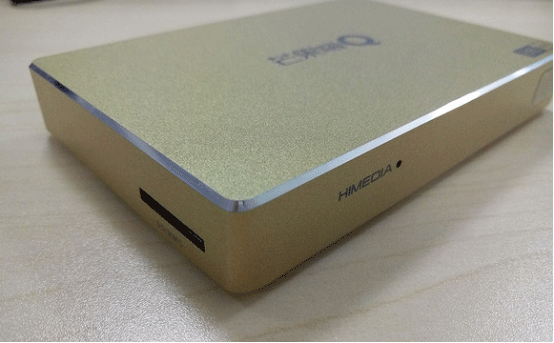 海美迪電視盒子采用了土豪金的配色,外殼采用三代切削,整機外殼為一體化鋁合金材質框架,提升質感的同時,對散熱性能有一定的提升,不至于那么卡。