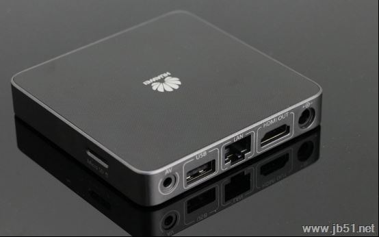 華為盒子主打黑色機身配色,機身頂部是有亮黑色的裝飾鏡片,LOGO設計上也是比較有特色,另外配合金屬質感的亮邊處理,整體的造型設計是突出極致簡約的。